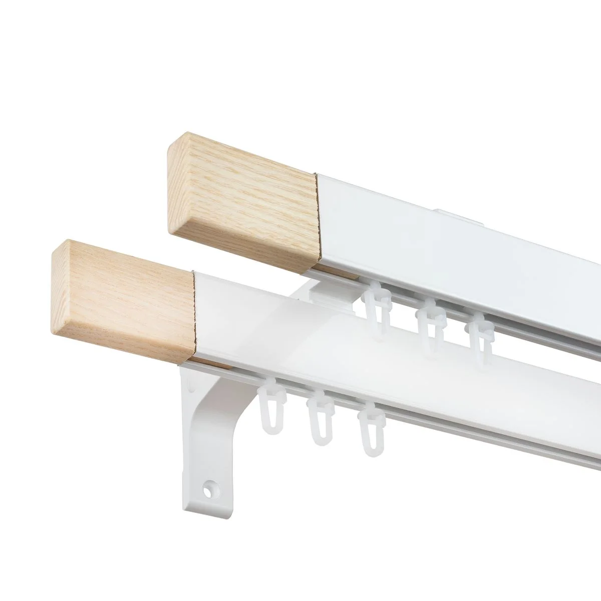 Creeaza o atmosfera aerisita si naturala in locuinta ta cu galeria dubla Seattle pe alb. Acest sistem inovator redefineste estetica ferestrelor, inlocuind inelele clasice cu un canal de culisare integrat pentru o glisare ultra-fluida. Contrastul dintre profilul alb mat si terminalele decorative in nuanta lemnului face din aceasta galerie alegerea ideala pentru amenajari scandinave, rustice-moderne sau minimaliste, unde lumina si materialele naturale sunt elemente centrale.