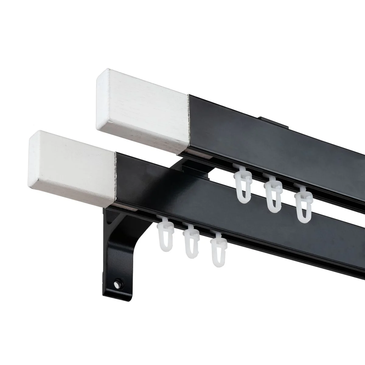 1. Capete Decorative Albe: Terminalele albe adauga un punct de lumina la extremitatile galeriei, creand un contrast curat si modern cu bara neagra mata.