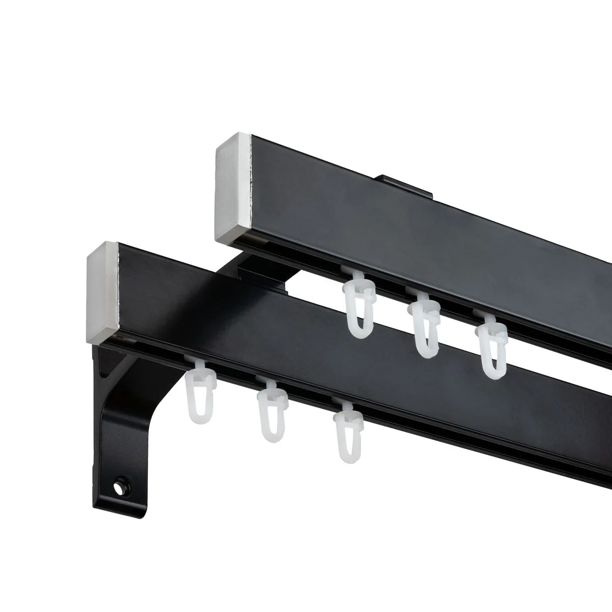 - Sistem Dual de Rulare: Cele doua canale paralele permit instalarea simultana a perdelei si draperiei pe un singur set de console, oferind o stratificare perfecta a materialelor textile.