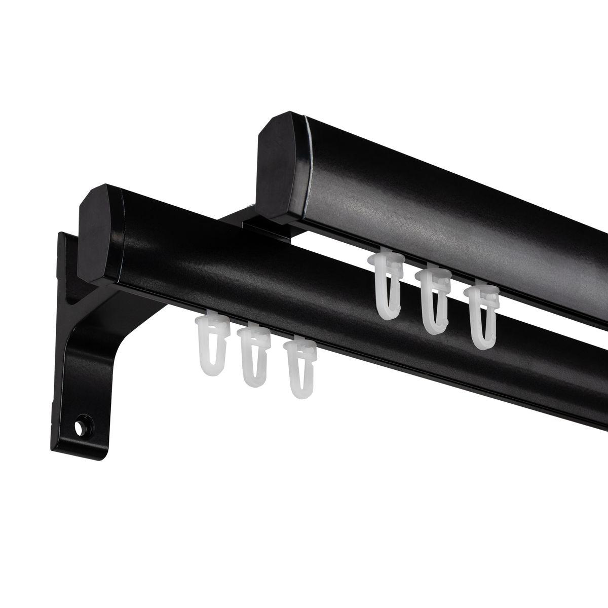 Transforma aspectul ferestrelor tale cu galeria dubla Seattle pe negru, un sistem de inalta performanta ce imbina eleganta vizuala cu functionalitatea avansata. Acest model hibrid elimina inelele traditionale, integrand doua canale de culisare paralele direct in profilele metalice. Finisajul negru mat si liniile riguroase fac din aceasta galerie alegerea ideala pentru decoruri industriale, minimaliste sau ultra-moderne, oferind o glisare impecabila pentru perdea si draperie.